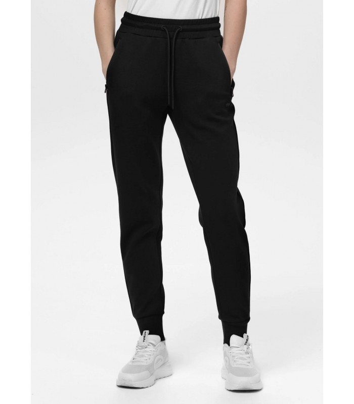 Spodnie sportowe damskie Pit Bull nadają się zarówno do użytku codziennego jak również do treningu. Spodnie uszyte z ciepłego miękkiego od wewnątrz materiału są bardzo komfortowe. Spodnie mają prosty krój, bez przeszyć, z tyłu gładkie, nogawki zwężane. W pasie i na dole nogawek szeroki ściągacz daje dobre dopasowanie do ciała. Spodnie Small Logo PBWC w pasie posiadają sznurek z bardzo efektownymi dużymi, metalowymi okuciami. Na wysokości lewego uda umieszczono gumowe z logo Pit Bull West Coast w kolorze białym. Duże zapinane na metalowe zamki kieszenie bez problemu zmieszczą podręczne drobiazgi, portfel lub telefon.