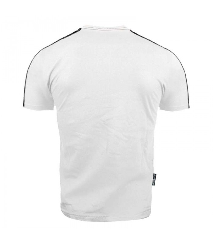 Koszulka męska marki Octagon to jedna z najnowszych propozycji marki. Model wpisuje się w obecne trendy modowe i zapewni świetny wygląd dzięki sportowemu krojowi. Koszulka bawełniana z ozdobnymi lampasami na ramionach w kolorze czarnym. Dodatkowo małe naszywki gumowe na lewej piersi i u dołu koszulki oraz mala żakardowa w bocznym szwie.
