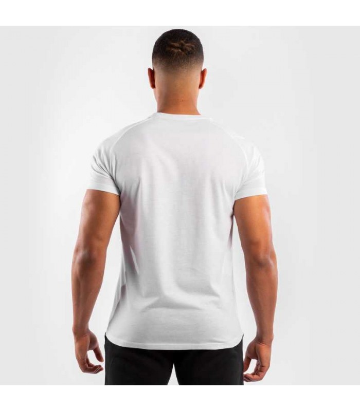 Koszulka w kolorze białym model Replica z eleganckimi szaro czarnymi nadrukami. Koszulka wykonana z wysokiej jakości przewiewnej bawełny z możliwością niewielkiego rozciągnięcia dla większej swobody ruchów. Koszulka UFCx Venum posiada reglanowo skrojone rękawy dla większej swobody ruchów i lekko dopasowany krój dla nowoczesnego wyglądu. T shirt Replica na ramionach posiada czarne nadruki z logo UFC i Venum, charakteru nadają nadrukowane szare pasy po bokach,