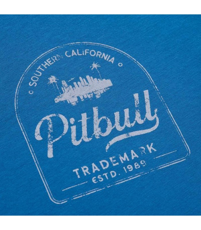 Koszulka Pit Bull model So Cal w jasno niebieskim z niedużym nadrukiem na piersi. Na plecach większy nadruk nawiązuje do klimatu wakacji nad morzem. Koszulka So Cal jest wykonana z najwyższej jakości cieńszej bawełny o gramaturze 140 g/m2, dzięki czemu jest lekka i przewiewna, co zapewnia komfort noszenia w cieplejsze dni i sprawia, że idealnie nada się na letnie wyjazdy.