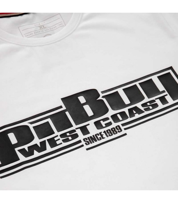 Męska koszulka Pit Bull Classic Boxing to najbardziej znany model tej marki dostępny w wielu kolorach. Popularna koszulka w kolorze białym posiada czarny nadruk na wysokości piersi z nazwą marki i datą założenia. Na karku czarny nadruk z logiem w formie pieczęci nadaje klasy i dyskretnie przypomina markę. Model Slim Fit to dopasowany fason i lekko elastyczny materiał podkreślający sylwetkę.