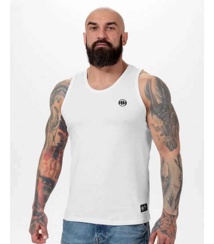 Koszulka Pit Bull bez rękawów z serii Slim Fit z gładkiej opinającej ciało bawełny. Tank top model Small logo z czarnym nadrukiem dzięki specjalnej mieszance bawełny ładnie dopasowuje się do ciała i podkreśla sylwetkę oraz jest bardzo komfortowa i nie krępuje ruchów. Koszulka ma krój casual - odkrywa ramiona ale nie jest nadmiernie wycięta. Posiada naszywkę z logo firmowym - z przodu przy dolnym obrzeżu. Nienachalny wzór i świetna jakość to idealna baza do wielu stylizacji.