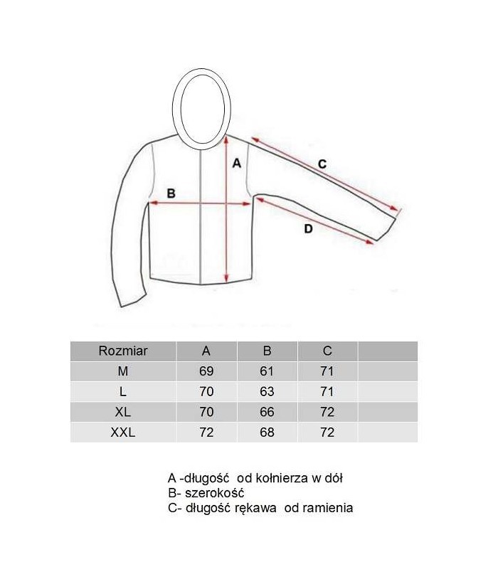 Zasuwane 2 kieszenie na dłonie z przodu i 1 na prawej piersi.