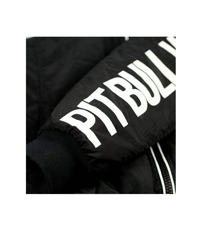 Wysokiej jakości kurtka jesienno zimowa w sportowym kroju z interesującymi detalami. Z tyłu na prawym ramieniu kurtka posiada nadrukowane logo PIT BULL WEST COAST, na lewym rękawie ozdobą jest nadruk PIT BULL WEST COAST w kolorze białym.