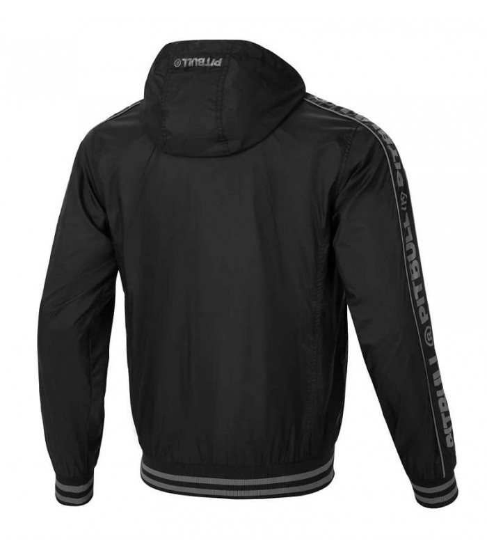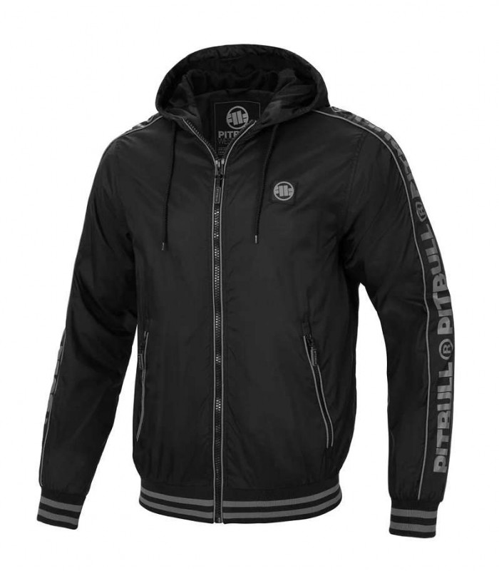 Kurtka wiosenno przejściowa z kapturem Pit Bull model Whitewood z kontrastowymi szarymi napisami na rękawach. Kurtka z letniej kolekcji Pit bull West Coast chroni przed wiatrem i deszczem. Kurtka posiada kaptur z podszewka siatkowa oraz regulacją na sznurek oraz dwie kieszenie zewnętrzne zapinane na zamki. Wewnątrz podszewka i głęboka kieszeń idealna na telefon. Rękawy i dół kurtki wykończone kontrastowym ściągaczem dają doskonałe dopasowanie do sylwetki i dopełniają stylu kurtki. Ciekawe detale - logowane wykończenia zamków, gumowy znak firmowy na piersi oraz na brzegu kaptura nadrukowany napis PIT BULL WEST COAST. Klasyczny sportowy fason nadaje prosty a jednak charakterystyczny wygląd