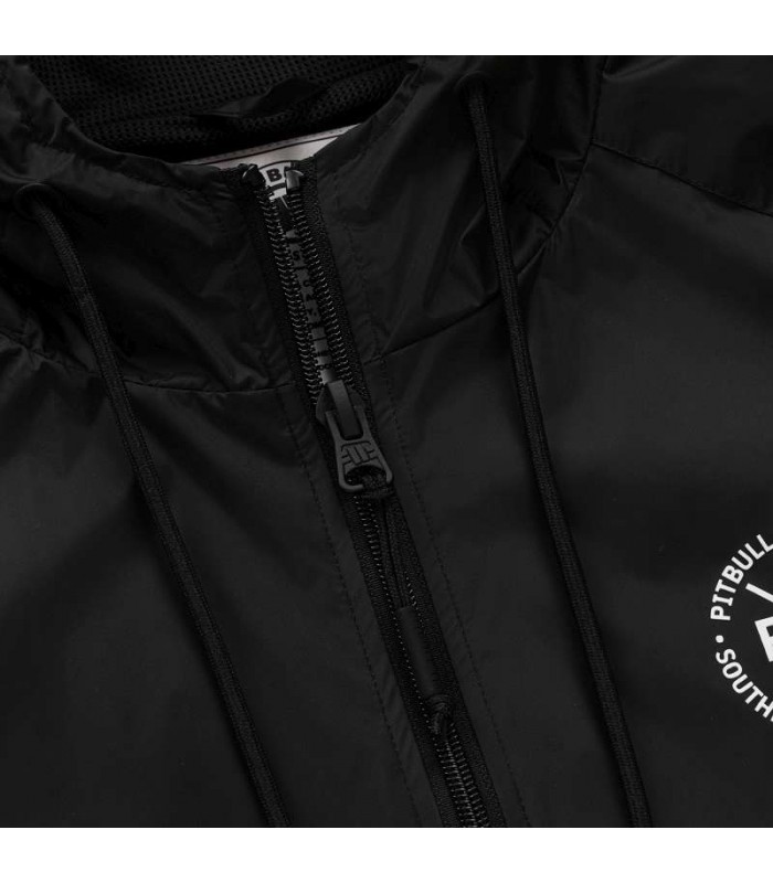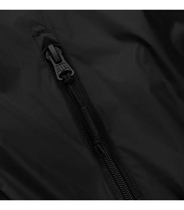 Model zapewnia również wysoki poziom oddychalności (8000 g/m²), dzięki czemu doskonale sprawdzi się zarówno podczas codziennego użytkowania, jak i aktywności na świeżym powietrzu. Wnętrze kurtki wykończone zostało lekką, poliestrową siateczką mesh, wspierającą cyrkulację powietrza i zwiększającą komfort noszenia. Dodatkowe otwory wentylacyjne pod pachami pomagają utrzymać optymalną temperaturę ciała. Kurtka posiada zintegrowany kaptur z regulacją na sznurek oraz wysoką stójkę, które skutecznie chronią przed wiatrem i chłodem. Raglanowe rękawy zapewniają swobodę ruchów, a szerokie ściągacze przy mankietach i u dołu pozwalają na lepsze dopasowanie. Funkcjonalność podkreślają praktyczne kieszenie – dwie boczne zapinane na zamki oraz wewnętrzna kieszeń na rzep. Wszystkie suwaki wyposażone są w wygodne zawieszki ułatwiające użytkowanie. Charakterystycznym elementem są naszywki na rękawie i kapturze, które nadają kurtce sportowego charakteru.