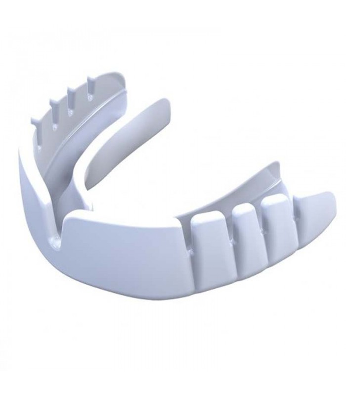 Uniwersalny pojedynczy ochraniacz szczęki UFC Opro Snap-Fit zapewnia natychmiastową ochronę, nie potrzebuje obróbki termicznej ani formowania. Może być używany do wszystkich sportów walki w tym karate, taekwondo, mma czy boks. W przeciwieństwie do tradycyjnych ochraniaczy zębów Snap-Fit nie wymaga żadnego dopasowania. Po prostu wystarczy zagryźć i ochraniacz jest gotowy. Pomimo, że ochrona jaką zapewnia szczęka bokserska UFC Opro Snap-Fit jest wystarczająca zaleca się zachować ją jako zapasowy wariant.