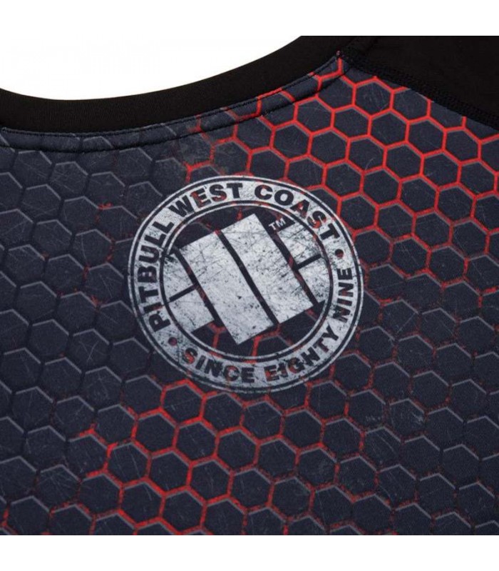 Koszulka Mesh treningowa typu rashguard z krótkim rękawem Pit Bull West Coast model Iron Logo. Seria Performance Pro+ jest stworzona dla profesjonalnych zawodników oraz dla amatorów ceniących sobie wygodę przez firmę Pit Bull. Świetny i wygodny rashguard ze wstawkami siatkowymi dzięki połączeniu 3 różnych struktur materiału daje duży komfort i wygodę użytkowania. Koszulka Mesh dzięki tkaninom 4-way stretch nie krępuje ruchów i pozwala na duża mobilność co jest dużym atutem w sportach ruchowych. Dzięki specjalnej mieszaninie włókien szybko schnie. Rash Guard Iron Logo posiada płaskie i elastyczne szwy tak aby zminimalizować możliwość powstania otarć oraz nie ograniczać pełnego zakresu ruchu. Materiał dodatkowo świetnie reguluje ciepłotę ciała oraz wentyluj. Nadruki wykonane są metodą sublimacji dzięki czemu mamy pewność, że są bardzo trwałe i nie spieralne