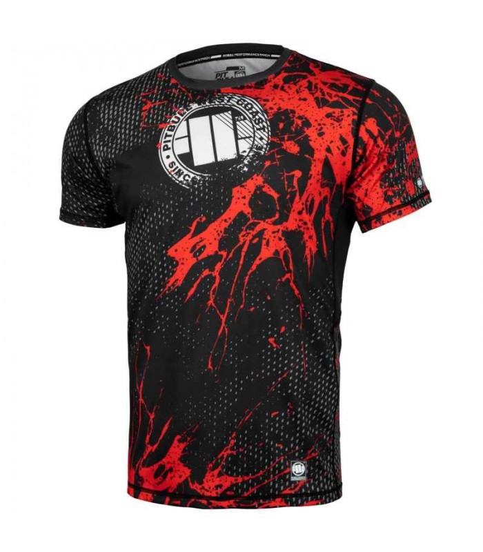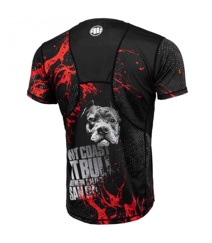 Koszulka treningowa Pit Bull West Coast z serii Performance Pro+ model Blood Dog z krótkim rękawem Wygodna koszulka treningowa łączy w sobie zalety rashguarda i koszulki typu Mesh. Koszulka techniczna Blood Dog chroni przed otarciami powstałymi podczas kontaktu z matą. Dobrze reguluje ciepłotę ciała oraz odprowadza wilgoć czyniąc trening bardziej przyjemny. Na plecach oraz po bokach koszulki są wstawki z dziurkowanej tkaniny typu MESH dla jeszcze lepszej wentylacji.T-shirt PitBull posiada elastyczne i płaskie szwy co eliminuje możliwość powstania otarć skóry. Wysokiej jakości nadruki wykonane są metodą sublimacji dzięki czemu mamy pewność, że są niespieralne i bardzo trwałe.